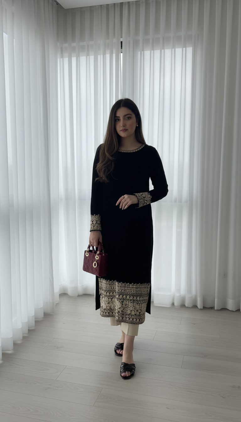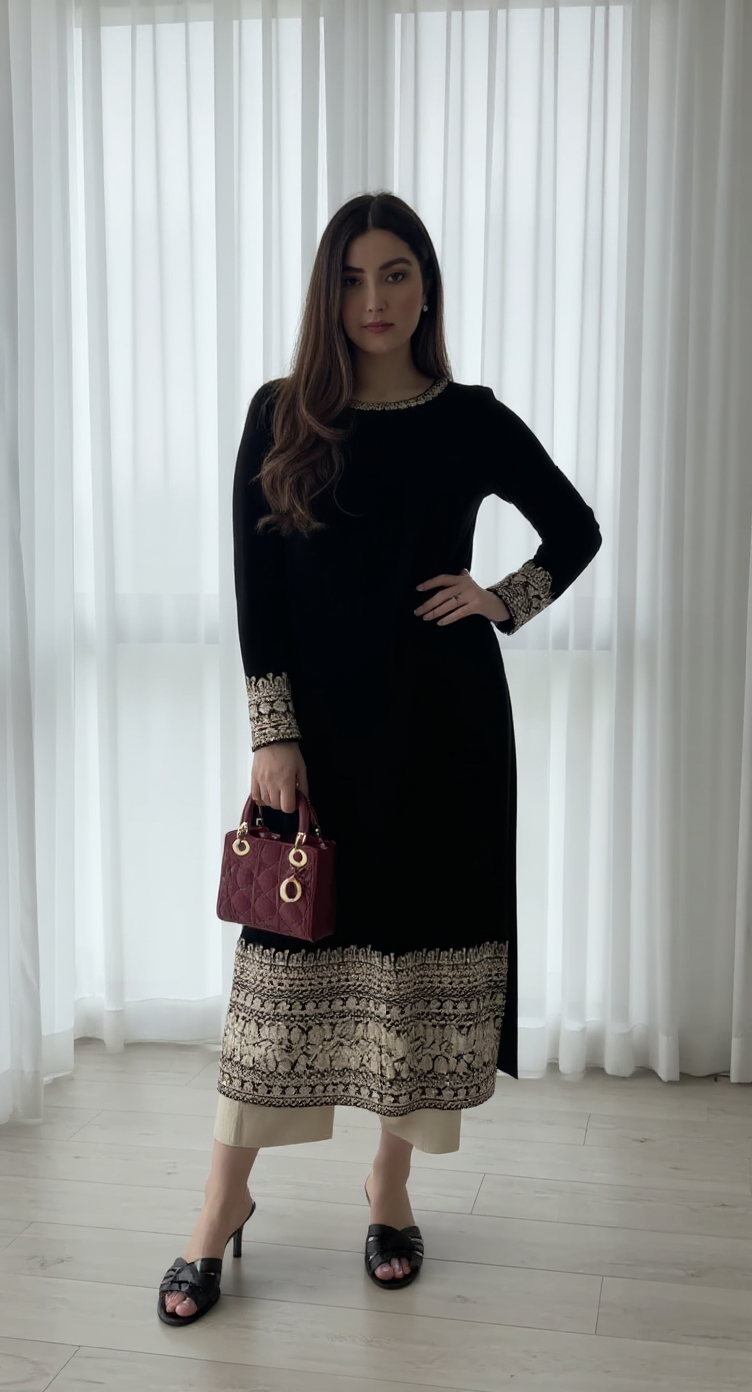 -A long embroidered velvet kameez.